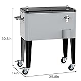 Large 60-QT Capacity Cooler Cart: This portable ice chest with wheels provides generous storage, as well as ample space for ice, guaranteeing your outdoor gatherings are always abundantly supplied with refreshing beverages. Extented Cooling Power: Keep the party going with drinks chilled for up to an impressive 48 hours. This SHAREWIN standing cooler not only serves its functional purpose but also adds a touch of cooler breeze to any outdoor setting.Keep cool for 48 hours, keep warm for 8 hours. Effortless Mobility: Say goodbye to heavy lifting. With four sturdy caster wheels and convenient handles, this outside coolers for patio can be effortlessly moved around. The four wheels can rotate 360 degrees in any direction, with two of them equipped with locks to prevent slipping and secure the position for added stability. Removable Flip-Top Lid: Grab your drink of choice in seconds. The fully removable fli-top lid makes access a breeze, allowing you to quench your thirst without having to lift the entire lid. Easy to Clean: The outdoor cooler cart has a built-in drain plug, when the ice melts, you just need to open the drain plug to finish cleaning.