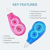 MINI AND CUTE: This correction tape bulk is designed to be mini, cute and colorful, easily fitting into pencil cases, backpacks, or desks. Perfect for students and office staff, this tape is a delightful addition to any stationery collection SMOOTH GLIDE: The correction tape glides in one clean swipe, erasing mistakes without drag, skips, or torn paper DRIES INSTANTLY: Our white correction tape dries in under 1 second—write over it immediately, zero smudges, zero wait FIRM ADHESION FOR DURABLE AND OPAQUE COVERAGE: The tape firmly adheres to paper for a reliable, no-peel finish and is opaque, so you can write or type directly over the corrected area without show-through, lifting, or flaking NOISELESS OPERATION: Whisper-quiet mechanism lets you fix errors anywhere without the tell-tale zip, perfect for libraries office and late-night study