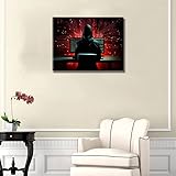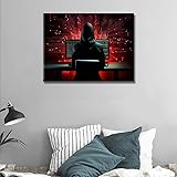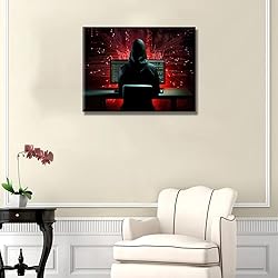 1 Piece Lines of Code and Binary Digits Canvas Wall Art Hacker in Action Wall Art for Living Room Dining Room Bedroom Hacker Home Decor Artwork for Home Walls Framed Ready to Hang 12X16 INCH