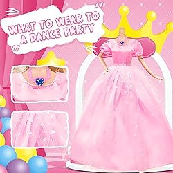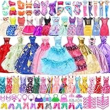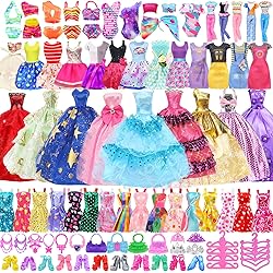 Exquisite Gift Set: 99 Random Doll Outfits and Accessories including:5 princess dresses, 10 dresses, 2 trendy skirts, 1 top, 1 pants, 1 jumpsuit, 2 swimsuits, 10 shoes, 6 necklaces, 6 crowns, 40 hangers, 5 handbags-A Dreamy Mini Wardrobe for Kids Versatile Designs: Catering to diverse occasions, this collection offers multiple styles of outfits and accessories. Let your kids become the chief stylist, designing countless stunning looks for our dolls from glamorous princess gowns to chic everyday ensembles. sparkling jewelry, elegant handbags is essential for creating the perfect ensemble Premium Materials: Doll clothes and accessories are crafted from high-quality materials for children's comfort and parental peace of mind. Every fabric is carefully selected—including cotton, satin, lace, sequins, and tulle—with reinforced Velcro closures and meticulous finishing for durability and elegance First Choice Gift: This pink-packaged doll clothes gift set is the ideal present for children, perfect for birthdays, Christmas, Children's Day, or any special occasion. Its elegant packaging makes it easy to carry and gift with confidence Fostering Aesthetic and Social Skills: Dressing doll in different outfits stimulates children's color perception, aesthetic sense, and imagination. Playing role-playing games with friends also effectively develops communication, collaboration, and social skills