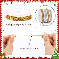 Good-Quality Material: Christmas ornament string is made of thin ribbon, which is light and soft, abrasion-proof, and not easy to break and fade. String for ornaments is well packaged on the spool, easy to cut into any required size and convenient to store. Christmas metallic cord is not only soft and silky, but also vividly colored, making Christmas cording for crafts a wonderful choice for Christmas decoration Festival Atmosphere: Metallic ornament string is designed in silver. You can choose and match the metallic cording for crafts according to your needs. Thin ribbon for ornaments has a shiny effect, and the Christmas metallic cord makes your Christmas decorations or gifts look more beautiful Easy to Operate: Christmas ornament string hangers are arranged neatly, which is convenient to use and easy to cut, ensuring that you can cut metallic ornament string into any required length without worrying about knotting or winding, ensuring that your holiday preparation is smoother and more efficient. Convenient gift packaging, Christmas tree decorations hanging, DIY or other activities Widely Used: Christmas metallic ornament string is highly decorative and can be used to tie gifts, gift labels, hang Christmas decorations, and package candy. String for ornaments is also suitable for hand-making, jewelry beading, clothing price labels, bookmarks or other creative projects to meet your various decorative needs Sufficient Quantity: There are 4 rolls of Christmas cording for crafts. Designed in silver. Each roll of ornament string hangers is about 22 yards /20 m long and 1 mm in diameter. The quantity is enough to meet the needs of various Christmas decorations and add a touch of vivid color to your holiday decoration