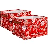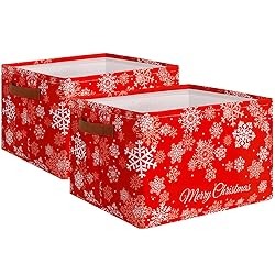 Fiwochic 2 Pcs Christmas Snowflakes Basket Box Large Foldable Christmas Storage Basket with Handles Red Xmas Empty Gift Box Collapsible Holiday Storage Organizer Bins for Home Bedroom Closet Office