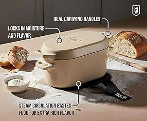 One Pot Wonder: Proof, Score & Bake: This Dutch oven does it all. Use it as a proofing box, then bake in the very same pot. Line with a parchment paper or a sling, cover with the lid, and let your dough rise. When ready, score and transfer straight into a preheated oven. Fresh, crusty sourdough with zero hassle. Includes recipe book for step-by-step guidance! Even Heat Distribution: Made from durable cast iron that ensures heat is evenly spread throughout the pot, for perfectly consistent cooking and no hot-spots. The thick walls keep food warm from oven to table and the smooth enameled surface minimizes leftover sticky stains and residues. Includes a lid lever for safe opening. Enameled Cast Iron: This trusty Dutch Oven boasts a 3.4 quart capacity and is crafted from durable material that effortlessly withstands high temperatures up to 500F and generations of heavy use. (And the dishwasher of course). Use in the oven, on the stove, or induction cooktop. Flavor Intensifying: The tight fitting lid allows steam to circulate while cooking. The steam continuously bastes the ingredients, locking in moisture and flavor for the most tender and delicious dishes. Perfect Condition Guarantee: We’ve carefully packaged this Dutch Oven with polyfoam to ensure it arrives in perfect condition. Also included is a how-to guide to get you started!