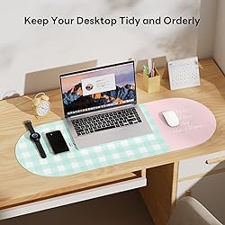 Velluxion Checkered Pattern Desk Pad Protector, 35.5 x 13'' Aesthetic Mouse Mat for Desktop, Waterproof PU Leathe Non-Slip Desk Writing Pad for Office and Home, Blue-Green Pink