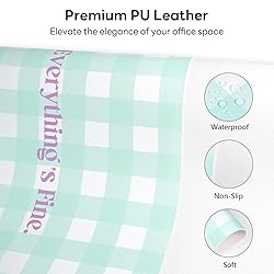 Design Story: This checkered desk pad cover is inspired by traditional British style plaid patterns, symbolizing natural elegance and nobility. The slogan ”Stay Positive” motivates you while you working. Simple, meaningful for long-lasting use Desk Pad Protector: Made from PU leather, this desk pad protects your workspace from scratches, stains, spills, heat, and scuffs. A practical desk organizer for home, dressing table, kitchen and office Large Mouse Pad: Measuring 35.5" in length and 13" in width, this leather desk pad offers a spacious operational space and smooth surface for writing, drawing, and mouse use, suitable for game players, designers, and craftsperson Easy to Clean: Crafted from waterproof, stain-resistant PU leather (heat-resistant to 85°C/185°F), these desk mats repel spills like coffee, ink, and crumbs. Simply wipe clean with a damp cloth for effortless maintenance Stable & Versatile: The non-slip base keeps this desktop mouse pad firmly in place during intense work or gaming sessions. Its generous size accommodates both office and home workspace needs