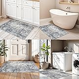 2x3 Washable Non-Slip Rug – Modern Abstract Neutral Small Throw Area Rug for Kitchen, Entryway, Bedroom – Soft Low Pile Thin Indoor Door Mat(Blue Grey,2x3)