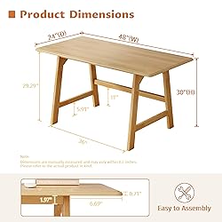 100% SOLID WOOD CONSTRUCTION - Manufactured from a premium rubberwood frame and a solid plywood tabletop for outstanding durability and a naturally elegant look. Simple yet practical, built to last for years. MINIMALIST WRITING DESK DESIGN - Features a spacious 48" x 24" raised desktop with a smooth finish and gently curved edges, offering a clean, comfortable surface ideal for writing, studying, designing, or computer work. STABLE & HEAVY-DUTY SUPPORT - Built with two unique crescent moon-shaped legs that provide exceptional structural stability, keeping the wood desk firmly grounded and wobble-free even during long and intensive use. VERSATILE FOR ANY DECOR ROOM - Standard 30" height and clean silhouette make the table perfect for the study, bedroom, living room, or kids' room—ideal for students, staff, professionals, and home-based creatives. EASY ASSEMBLY & SECURE PACKAGING - Well-packed to prevent damage, the package includes all necessary tools and clear, step-by-step instructions for a quick and hassle-free assembly, which is usually completed within 15 minutes.