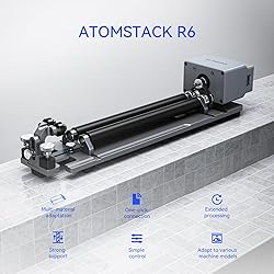 【Ideal for Engraving Irregular Cylinders】ATOMSTACK MAKER R1 PRO Rotary Roller is designed for engraving a variety of irregular cylindrical objects and offers an adjustment angle of up to 180° and a rotation capability of 360°. These include balls, rings, spherical objects, cups with handles and various irregular objects. The high quality rotary chuck ensures smooth and stable rotation, resulting in improved engraving accuracy.( Class 4, Output power 12000mW). 【Precision & High Speed】Experience precise high-speed engraving with our machine, which features a powerful high-torque motor that reaches speeds of up to 6000mm/min and achieves an impressive accuracy of 0.1mm. The claw, made of high-hardness brass alloy, ensures durability and reliability, while its non-slip design ensures stability for long-term use. 【No Installation Required & Easy to Use】The updated Rotary Roller features a high-strength aluminum alloy structure that requires no installation - it's ready to use. Adjusting the distance of the scooter is very easy and requires no tools. If you decide to install the Rotary Roller on your engraver, simply replace the Y-axis terminal to create a seamless connection to the engraving machine. 【Usage Notes & Raised Foot Pads Included】Change the configuration parameters of the software before using the Rotary Roller. The package includes four 100mm high foot pads to raise the engraving machine and allow perfect adjustment to the rotary roller. 【Wide Compatibility & High Adaptability】Compatible with popular software such as GRBL, LightBurn and more, this rotary roller is suitable for 95% of desktop engraving. It works seamlessly with various brands such as ATOMSTACK, Creality, XTOOL, ORTUR, Sculpfun, Genmitsu, LONGER, Twotrees, ATEZR and others. 【Quality Guarantee】We provide one year free maintenance, spare parts and technical support. If you encounter any problems during use, please contact our seller's customer service. Our team will resolve any issues for you as quickly as possible.