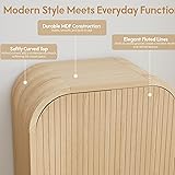 LEVNARY Arched Armoire Wardrobe Closet, Mid-Century Modern 2-Door Freestanding Wardrobe with Hanging Rod and 2 Drawers, Fluted Carved Clothing Storage Cabinet for Bedroom (Natural)