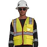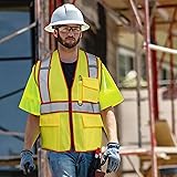 【High Visibility & Reflective Design】Enhance your safety with AYKRM's high-visibility vest, featuring 2-inch wide retro-reflective tapes and multi-color reflective trim for maximum visibility in both daylight and low-light conditions. Perfect for roadside work, nighttime operations, or low-visibility environments. 【Durable & Breathable Material】Made from 100% lightweight polyester, this vest is breathable, washable, and built to last. The black edging resists dirt, keeping it cleaner for longer. For a looser fit, we recommend sizing up—check our size chart before ordering! 【5 Functional Pockets for Convenience】Stay organized with 5 smartly designed pockets:✔ 1 left chest pencil pocket (with flap) - perfect for quick access to writing tools.✔ 2 partitioned compartments on the right chest - ideal for storing small items securely.✔ 3 lower external flap pockets - spacious enough for gloves or other essentials.Plus, reinforced stitching, durable shoulder mic tabs for radios, and a dedicated flashlight/pen pouch - all built to withstand rigorous daily use. 【Versatile for Work & Outdoor Activities】Ideal for construction workers, warehouse staff, traffic controllers, surveyors, delivery drivers, and more. Also great for cycling, jogging, hiking, and motorcycling. A must-have for safety-conscious professionals and outdoor enthusiasts. 【Quality Assurance & Risk-Free Purchase】Note: This vest is NOT anti-static or flame-resistant (FR). If you encounter any issues, contact us for a hassle-free exchange or refund. Click “Add to Cart” now and work with confidence!