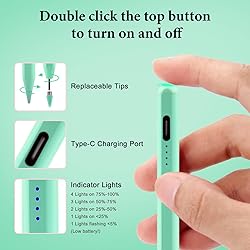 Universal Compatibility: This stylus pen is compatible with most capacitive touch screens, including smartphones, tablets, and devices running iOS, Android, and Harmony OS. It works seamlessly with Apple iPhone, Samsung Galaxy, Huawei tablets, and more. Replaceable 1.7mm Fine Tip for Precision: Featuring a 1.7mm replaceable fine tip, this stylus provides precise and smooth writing or drawing without lag or scratches. Perfect for detailed sketches, note-taking, and professional creative work. No Bluetooth Required – Simple to Use: Skip the hassle of pairing! Simply press the button to power on, and start using the stylus instantly. Easily switch between devices without the need for Bluetooth or additional apps. Quick Charging & Long Usage Time: Charge the stylus for just 30 minutes, and enjoy up to 10 hours of continuous use. The intelligent energy-saving feature automatically puts the stylus into sleep mode after 5 minutes of inactivity to preserve battery life. Lightweight, Durable, and Versatile: Designed for long-term use, this stylus features a lightweight, sturdy build for comfort and durability. It’s perfect for professionals, students, and artists alike, and works seamlessly with apps like Procreate, GoodNotes, and more. The replaceable tip ensures extended use and value.