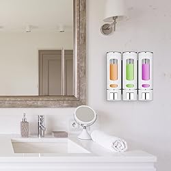 - Wall Soap Dispenser Triple Shampoo And Conditioner Dispenser | 3x400ml Chamber Shower Pump Soap Dispenser Shampoo Box Lotion Gel Container For Toilet Bathroom Hotel Features: 1. Wall Soap Dispenser contains 3 chambers. 2. Wall Soap Dispenser is suitable for family packaging. 3. Shower Soap Dispenser has a transparent design. 4. Wall Shampoo Dispenser supports multi-functional storage. Specification: Material: ABS Capacity: 400ML each Overall size: 21*21.5Cm/8.27*8.46in color: White Packing list: 1*soap dispenser 1*Screw Mounting Kit