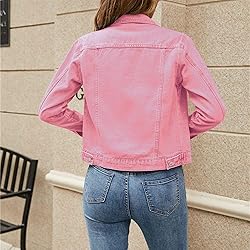 Jean Jacket Women Classic Fitted Lapel Button Down Cropped Denim Jacket Fashion Long Sleeve Candy Color Jean Coats