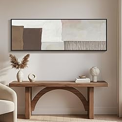 Framed Bedroom Wall Art: This 19x57 inch framed canvas wall art features a long narrow horizontal design with calm beige, brown, and soft gray tones, bringing a peaceful modern look to bedroom walls Premium Canvas & Solid Wood Frame: Crafted with quality canvas and a sturdy solid wood frame, this minimalist abstract artwork offers a refined finish that pairs well with neutral, modern, and contemporary bedroom decor Long Narrow Over Bed Wall Decor: The extra wide long and narrow layout is ideal for hanging above beds, long dressers, or benches, helping fill large wall spaces while keeping the room feeling clean and uncluttered Soft Minimalist Abstract Design: Gentle block shapes and soft color transitions create a soothing visual effect, making this framed wall art perfect for primary bedrooms, guest rooms, or cozy reading corners where you want a relaxing vibe Versatile Bedroom Styling: Works beautifully with white, beige, or brown bedding and warm wood furniture, making it a stylish choice for bedroom makeovers, new home setups, or thoughtful housewarming gifts