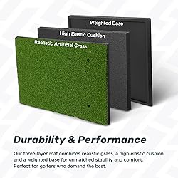 【Larger Pro Practice Area】Upgraded to a 25" × 13" large hitting surface, this mat provides ample room for natural swing movement. Ideal for practicing drives, irons, and woods, helping you train more comfortably and confidently 【Heavy-Duty Rubber Stability Base】Reinforced rubber backing reduces sliding and absorbs shock to protect your hands, wrists, and clubs. Rubber-wrapped edges prevent turf tearing or lifting, greatly extending durability 【High-Density Realistic Turf】Crafted with premium high-density synthetic turf that delivers true fairway-like feel and feedback, helping golfers of all skill levels improve consistency and strike quality 【Versatile for Indoor & Outdoor Use】Perfect for backyards, garages, patios, basements, concrete floors, and more—allowing you to train professionally anytime and anywhere 【Train with Confidence】Comes with a durable golf rubber tee, allowing you to practice tee shots, swing mechanics, and accuracy—helping players of all levels sharpen their skill