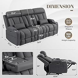 Zero Wall Hugger Design: Our power reclining sofa showcases groundbreaking zero wall hugger technology, enabling you to position it flush against the wall while still achieving a full recline. Unlike traditional designs that require inches of clearance, our zero-gap solution maximizes every square inch of your living space. Whether you're furnishing a compact apartment, cozy home theater, or open-concept living area, it eliminates the dead space behind furniture, ensuring your room remains uncluttered and highly functional Manual Adjustable Headrest:The manual adjustable headrest features three distinct adjustment levels, allowing for effortless customization to suit your unique comfort needs. Whether you're watching a movie, diving into a book, or taking a quick nap, simply choose from the three preset angles. When paired with the seat in different states, whether it's fully reclined for relaxation or in an upright position for work, this ergonomic design gently supports your neck, effectively alleviating strain and fatigue Multifunctional Center Backrest: This sofa's versatile center backrest not only flips down to provide a handy surface for snacks, drinks, or remote controls but also comes equipped with an integrated panel. This panel features two US standard outlets, one USB port, and one Type-C port, allowing you to charge your phone, tablet, or laptop while keeping them within arm's reach. It's perfect for movie nights, work sessions, or staying connected during family gatherings. When folded up, it seamlessly transforms back into extra seating Premium Tech Fabric: Crafted with high-quality tech fabric, this power recliner sofa delivers the luxurious look and touch of premium upholstery while boasting remarkable durability. The innovative material features advanced stain and spill resistance, shrugging off common household messes, and withstands the rigors of daily use, making it a top choice for families with kids or pets. Its unique diamond stitched backrest adds geometric beauty, evenly distributes weight, and reduces pressure points Storage & Convenience Features: Designed with everyday convenience at its core, this electric reclining couch boasts an array of practical features. Side pockets offer ample space to neatly store magazines, books, and remote controls. Two-sided flip cup holders that adapt to cups of varying heights, keeping your drinks secure and preventing spills. Meanwhile, front small pockets provide a handy spot for stashing keys, glasses, charging cables, and other small items, ensuring everything you need is within arm's reach Plush Comfort, Precise 150° Recline:This wall hugger recliner sofa wraps you in high-density foam cushioning that molds to your body, while the ergonomically designed armrests and frame distribute weight evenly, reducing pressure on your back and legs. The highlight is the generously padded footrest, plump and soft, providing full support for your legs.With a smooth recline mechanism, lets you glide effortlessly to a 150° tilt-ideal for reading, napping, or movie marathons. While the frame’s robust construction ensures stable, wobble-free reclining every time Easy Assembly & Warranty: Neptane electric recliner couch comes in 5 boxes and includes a detailed assembly instruction and all necessary tools. It can be fully assembled in just 20 minutes. We are committed to providing our customers with high-quality products and services, and offer a one-year free warranty. If you have any questions about the 3 seater recliner sofa with adjustable headrest, please feel free to contact us at any time