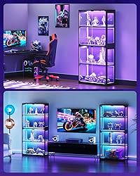 【Exceptional Customer Service】The curio cabinet includes all tools and illustrated instructions for a smooth setup. Two-person assembly is recommended, and our team is available 24/7 to assist with installation and provide top-notch support for any quality concerns 【Immersive Light Show】 Command an immersive light show by AODK glass display cabinet with 6,000 RGB colors and dynamic modes—strobe, fade, smooth, and music-reactive. Control multiple display shelves via one APP, sync lights to music, keeping your collection dramatically lit day and night. Note: This display shelf does not include a power adapter. A DC 5V/2A power adapter or a USB-enabled outlet is required to power the light. 【Detail-Alive Cabinet】Designed for anime and gaming fans, this display case features a sturdy steel frame and an ultra-clear tempered glass door. The sleek, modern look brings sci-fi figures, bricks, and model cars to life—every detail on full display 【Ample Storage Cabinet】Measuring 27.6"W x 63"H x 11.7"D, this 4-tier glass cabinet provides spacious, well-organized storage for your collectibles. Its tall, slim profile maximizes vertical space and fits neatly into bedroom corners, game rooms, or living spaces 【Secure Structure & Easy Open】 A reinforced back panel and anti-tip kit ensure the cabinet rock-solid stability. The smooth one-touch pop-up glass door opens easily without sticking, giving you convenient, everyday access to your prized collections 【Multiple Display Cabinets】: Avoid connecting multiple cases to different USB ports on the same power hub. Sharing a USB hub with multiple cabinets or other devices (like phones) may cause power overload, flickering, or instability. It's recommended to use a separate power source for each cabinet