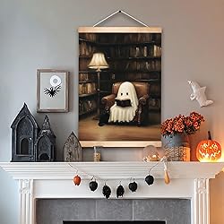 INSPIRED DESIGN:This gothic wall art features a detailed Ghosts and Black Cats with vintage dark aesthetic elements, perfectly capturing the mystery and elegance of gothic culture.Add a focal point to your living room, bedroom, or office decor. MATERIA:Our wall art poster crafted from high-quality canvas with a natural pine wood frame, this wall hanging offers durability, a textured feel, and a rustic charm. Size: 14x18.5 inches. CREATIVE DECOR:Perfect for Gothic & Dark Aesthetic Interiors,complements vintage, steampunk, and alternative decor styles, making it suitable for gothic bedroom wall art, dark romantic living room decor, or a unique office decoration. UNIQUE GIFT:For a unique and meaningful gift, this retro wall art poster is an excellent choice. It's perfect for giving to friends or parents on occasions like Thanksgiving, Halloween,Christmas, New Year's, Mother's Day, Father's Day, retirement, graduation, birthdays, or housewarmings. READY TO HANG:Comes with sturdy wooden hangers and rope, easy to hang and move, no additional installation required.