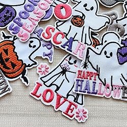 MISDONR 16pcs Ghost Iron on Patches Halloween Embroidered Patchs Applique for Repair Decoration Jacket Jeans Clothes Hats Shoes Bags