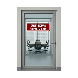 PACKAGE INCLUDED: 3Pcs Sign Sticker (QUIET HOURS 10 PM TO 8 AM). Size: 6x2x0.01In (LxWxH). LONG LASTING-NO FADING: Printed with a high resolution UV protective ink to ensure vibrant long lasting colors, 100% Waterproof. HIGH QUALITY MATERIAL: This UV protected Sign is great for indoor or outdoor use, can be applied to any place surface. FEATURES: These Caution stickers are in good quality, have a strong weather resistance that protect them away from sun shining and water raining, also Durability and sturdy that hard to be torn, and have a strong adhesive. EASY TO USE: The our sticker is self-adhesive , no drilling or any special tools required, just peel it off and use it. It is very adhesive and can fit perfectly with glass, wood, door and stainless steel surface.