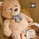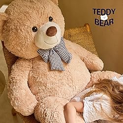 Ultra-Soft Giant Teddy Bear --- Everyone deserves a warm hug! This 4ft big teddy bear isn't just a plush toy, it's a loyal companion that brings comfort, security, and joy into your life. Perfect choice for child's childhood memories, romantic moments between lovers, or as a heartfelt gift for someone special. Premium & Safe Materials --- Made with skin-friendly plush fabric and eco-friendly PP cotton filling, our jumbo stuffed animal toy meets international toy safety standards. It's hypoallergenic, ultra-soft, and fluffy provide gentle cozy snuggles and soothing touch for both kids and adults. Perfect Gift for Every Occasion --- Make every celebration unforgettable! This cute plush teddy bear is a heartwarming present for everyone and all occasion! Ideal for Christmas surprise, Valentine's Day, birthday, or graduation gift. It's the most loving way to say "I'm here for you" to children, girls, friends, and your loved ones. A Lifetime Cuddle Buddy --- This lifesize teddy bear is not just adorable, it's irreplaceable. From bedtime stories, movie nights to quiet evenings alone on the couch, this stuffed bear toy offers constant comfort and companionship. It becomes a part of your story, preserving your happiest memories and adding a little sparkle to your everyday life. Easy Care & Long-Lasting Love --- To keep the plush bear toy fluffy and fresh, we recommend hand washing. Machine wash in a laundry bag and gentle cycle. If you ever need help, our dedicated customer support is always available to assist you. May this teddy bear stay by your side for years to come and brings you comfort and joy!