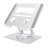 Heayzoki Tablet Stand, 360 Degree Rotating Base Adjustable Foldable Aluminum Alloy Support Bracket with Open Ventilation Design, for 5.8 to 12.9 Inch Tablets Electronic Readers (Silver)