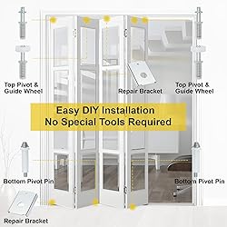 - Upgrade and restore your wooden bi-fold doors with this Complete Bi-Fold Door Repair Kit, specially designed for 1-3/8" wood doors. This all-in-one set includes 8 N7192 heavy-duty repair brackets to reinforce pivot holes, 2 sets of N7266 top pivot and guide wheel assemblies for smooth track operation, and N7538 bottom pivot pins in both 3/8" and 7/16" sizes to ensure compatibility with a wide range of door frames.
