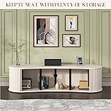 Durable Structure: This modern TV stand measures 59.0 x 17.7 x 14.9 inches and accommodates TVs up to 65 inches. The TV stand with storage is made of MDF board and is ideal for the living room, bedroom, or home office Sliding Tambour Doors: Our entertainment center has stylish sliding doors with easy-grip vertical handles, allowing for one-handed operation. This thoughtful design provides you with a smooth and intuitive way to access your media items or books quickly Versatile Use: Our multifunctional media console cabinet provides generous storage for your media components, game consoles, and accessories. Use it as a TV console, media cabinet, credenza, entryway sideboard, or buffet cabinet to meet all your needs Sleek Design: The fluted design and curvy edges give the fluted TV stand a unique aesthetic, blending mid-century and modern styles that stand out without overpowering. Its low-leg design ensures stability, minimizing wobbling and boosting safety Quick and Easy Assembly: Our VERTOXIA television stand for living room comes with clear instructions, tools, and labeled parts, so you can assemble it in just 30 minutes without needing to use any screws. If you need assistance, we're here 24/7 to help