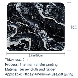 Small Mouse Pad Black Marble Texture Desk Pad, Comfortable Mouse Mat with Non-Slip Rubber Base, 8.3" x 9.8" Mousepad for Computer, Laptop, Game, Office & Home