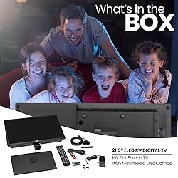 FULL HD WIDESCREEN DISPLAY - Watch vibrant visuals on a 21.5" flat screen TV with 1080p resolution. Enjoy clear, lifelike color with 178° viewing angles from any seat. This mini LED TV delivers a sharp, detailed picture in a compact size PC AND MULTIMEDIA COMPATIBLE - Connect your PC or laptop and use this small TV as a secondary monitor. Easily view photos or stream audio with plug-and-play convenience. Multi-mode display options like 16:9, 4:3, Zoom, and Cinema tailor your viewing SPACE-SAVING WALL MOUNT DESIGN - Mount this mini LED TV to the wall and free up surface space. The included stand is removable for easy installation in RVs or compact rooms. VESA 100x100mm compatibility allows flexible setup in any environment MULTIPLE CONNECTION OPTIONS - Connect external devices easily via HDMI, RCA, VGA/PC, and RF input. Output interfaces include COAX, headphone jack, and analog line out. Built-in stereo speakers complete this compact television’s all-in-one design SMART FEATURES AND DVD PLAYER - Features include a built-in slot-in DVD player, V-chip, sleep timer, and side panel controls. Ideal as a compact flat screen TV for road trips, RVs, or bedrooms. Comes with a full-function remote and 2 AAA batteries
