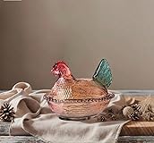 ccsxqy Vintage Glass Hen on Nest Dish with Lid - Large Pedestal Rooster Glass Candy Bowl, Colorful Crystal Candy Jar for Snacks, Dessert, Cookies | Home Kitchen Office Tabletop Decor