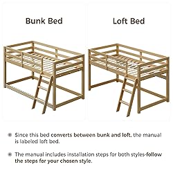 - Designed to grow with your child, this low bunk bed offers sleep, storage, and play in one smart setup. The bottom space adapts from kids bunk bed to open area, with built-in LED light and 6 hooks for daily essentials. A space-saving wood frame with stairs and guardrails makes it safe, stylish, and ideal for small rooms.