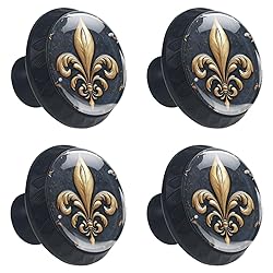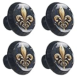 YUJNGFDFFR 4 Pack Fleur de Lis Iris Drawer Knobs, Black Cabinet Knobs, Kitchen Cabinet Hardware with Screws, Round Glass Drawer Dresser Handles Pulls, 35mm