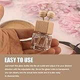 Premium Quality: These car diffuser air freshener bottles feature glass bottles for a transparent look, paired with thick, durable wooden caps. The natural wood helps the fragrance flow smoothly, ensuring long-lasting aroma diffusion in vehicles and spaces. Elegant Decorative Design: Combines a clear glass bottle with wooden caps and volatile sticks, creating an elegant, textured appearance. It enhances interior aesthetics while releasing pleasant scents, offering both visual appeal and aromatic benefits. Compact Practical Size: These car diffuser air freshener bottles measure 1.06 inches wide and 2.76 inches high, with an 8ml (0.27oz) capacity. They fit easily on car air vents without blocking airflow, saving space while holding enough essential oil for a lasting fragrance. Simple Refill & Use: These car diffuser air freshener bottles are easy to fill with essential oils (not included). The glass bottle lets you check liquid levels at a glance, enabling timely refills. Adjustable clips secure them to car vents, making setup quick. Multi-functional Applications: These car clip diffusers work great not just as car ornaments, but also can be put in your room, on the table, in the office, bathroom, or even simply placed or hung in your closet.