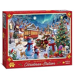 【Christmas Station】The 1000 piece Christmas puzzle for adults depicts a warm Christmas scene. Package contain 1000 pieces puzzle and a 1:1 reference poster that help you to finish the puzzle. Every piece is unique, complete cutting and fits perfectly. Puzzle finished size: 27.56 x 19.68 inch / 70 x 50 cm. 【High Quality Jigsaw Puzzle】This jigsaw puzzle made of high quality thicken recycled board material, no deformation, multi-layer paper pressing, non-toxic.Safe and non-toxic ink, with no glare, bright and not easy to fade. Precision cut ensures tight interlocking. 【Missing Pieces Support】- MISSING PIECE NO WORRY. If you have any issues with the jigsaw puzzles 1000 piece, please feel free to contact us and we will send you a replacement item. 【Puzzles for Kids & Adults】Puzzles for adults 1000 pieces and up is one of welcome games that never go out of style. It can effectively inspire people's thinking, train their thinking, judgment and patience. When you complete a puzzle, you will feel happy and satisfied. You can enjoy your time alone or invite your family to play with you. 【Best Christmas Gift Choice】- Completing jigsaw puzzles 1000 piece with family or friends can strengthen the "connections" between each other. This puzzle game can be an ideal gift choice on your Thanksgiving / Christmas list as it is a best gift for jigsaw puzzle fans of all ages.