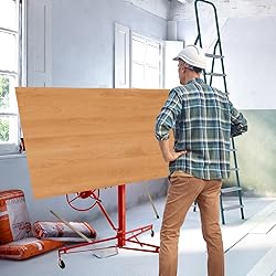 - Drywall Lift Panel Hoist Jack Lifter Product Description: 100% brand new, Never been tried or installed Sturdy and stable, this drywall panel lift lets you lift drywall and sheet rock without assistance. The sturdy welded steel construction holds single drywall panels up to 150 lb.The drywall panel lift features an automatic load holding brake for safety, an extendable tripod base for stability and smooth-rolling non-marring rubber casters that easily lock in place. This drywall lift is made of durable steel, which will not shake or tilte at will, while the triangular structure at the bottom makes it more stable, and has a maximum load capacity of 150 lbs. Specifications: Load capacity: 150lb Foldable: Yes Material: Steel Style:Industrial Package Include: 1x Drywall ifter 1x Installation manual As picture shown Wide Application: The drywall panel lift hoist is easy to assemble and disassemble without tools. At the same time, the panel lift has a folding function to save your space. It's versatile enough to serve both residential and commercial needs.