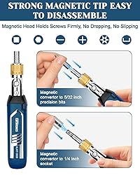 VERSATILE BIT & SOCKET ASSORTMENT: Comes with a wide range of bits and sockets. ( Includes 6, 7, 8, 9, 10mm sockets, PH0/PH1/PH2, SL3/SL6, Torx T15, Hex H5, U6, and ADP bits) It neatly stores different sizes, covering electronics, furniture, and small - appliance repairs. One set replaces multiple single tools, saving space and streamlining your tool box. SMOOTH RATCHET MECHANISM: The core ratchet design enables quick, effortless operation. Switch between clockwise/counterclockwise with a flick, perfect for tight spaces. Delivers consistent torque, preventing stripped screws. Makes precision repairs easy, whether you’re a DIYer or pro. HIGH HARDNESS MATERIAL: Crafted from high-strength carbon steel, wear - resistant metal bits/sockets, sturdy plastic casing. Withstands frequent use, resists corrosionIt meets the needs of long-term high-intensity use and is a trustworthy ratchet screwdriver set. COMPACT PORTABLE DESIGN: Foldable, organized storage keeps bits/sockets secure. Compact enough for tool bags, backpacks, or even pockets. Ideal for home, workshop, or on - the - go fixes. Always have the right tool handy, anywhere. VERSATILE FOR EVERY TASK: Easy to load bits, operate the ratchet. No complex setup needed. Perfect for electronics repair, furniture assembly, appliance installation, bike maintenance, home improvement, and more. Always ready for quick fixes wherever you are.
