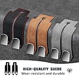 Storage Function: This car headrest hook can securely hang various items, such as backpacks, shopping bags, or umbrellas and coats inside the car, making use of the interior space and eliminating the clutter caused by randomly placed items. With its foldable design, the hook can be tucked away when not in use, saving space inside the car and avoiding the clutter caused by exposed hooks. It can also be used as a mobile phone holder, making it convenient for watching TV shows. Fall Prevention: The dual-hook design of this car headrest hook evenly distributes weight. Even on rough roads, it securely holds items in place, eliminating the risk of wallets, water bottles, shopping bags, etc., falling. Additionally, the hook edges are smooth and rounded, preventing sharp corners from scratching surfaces, effectively protecting the safety of children and pets. High Quality Material: Our car headrest hooks are made from high-quality metal and suede leather. The metal material offers good load-bearing capacity, easily supporting various items, even heavy backpacks or shopping bags without deformation or damage. The suede leather material not only adds a luxurious feel to the interior but also effectively prevents friction and scratches between the hook and the items. Wide Application: Our car headrest hooks measure 6.7 inch in height, 1.77 inch in width at the top, and 3 inch in width at the base. This product offers broad compatibility, fitting a wide range of vehicle types, including compact sedans, SUVs, and MPVs. Its unique design allows for flexible installation on either the front or rear headrests, maximizing the use of space above the seats and providing a convenient storage solution for the vehicle interior. Easy Installation: Installing this car headrest hook is extremely simple. First, align the hook with the car's headrest rod; then slip the hook over the headrest rod. Finally, adjust it to the desired position to ensure the hook is secure and does not wobble. Installation is quick and straightforward, and even first-time users can complete it in just a few seconds, instantly adding practical storage functionality to their vehicle.