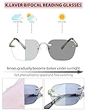 K.LAVER Photochromic Rimless Bifocal Reading Glasses For Women&Men,Frameless Reading Glasses-Anti UV/Blue Light