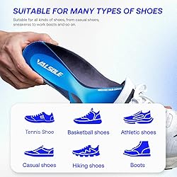 Ergonomic 3D DAPT Technology: Made from a deep fusion of dynamic data-driven, biomechanical modeling and 3D printing, this arch support provides a precise and efficient solution for foot pain relief, sports protection and daily health management Superior Performance Sport Insoles: VALSOLE's dynamic arch support insoles are designed for high-intensity sports and is designed to provide high-performance cushioning and shock absorption for strenuous physical activities including running and jumping Detachable Metatarsal Shock Pad: Comfort that is completely customized by you! The metatarsal support pads in these running insoles are removable and designed to not only help distribute pressure and relieve fatigue, but also to enhance your comfort during exercise as you need it Breathable and Moisture Wicking: These orthopedic insoles are made from multiple layers of high-quality materials. The surface layer is made from breathable mesh fabric, which enhances air circulation and quickly wicks away moisture and sweat, keeping your feet dry and cool even during intense exercise Multi-Purpose Sport Shoe Insoles: These running insoles are perfect for running, playing basketball, soccer and hiking. Suitable for sneakers, work boots, running shoes, basketball shoes, tennis shoes and so on. Initially, wear them for 1 hour a day, and then increase the time every day until you are fully adapted