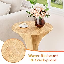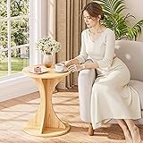 Round Side End Table - Wood Accent Coffee Table for Living Room, Modern Circle Nightstand with Pedestal for Small Spaces Bedroom Sofa, Vintage Corner Couch Bedside Table (Natural)