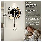 [Stylish and Functional] This modern wall clock with pendulum features a sleek geometric design that blends circular and linear elements, adding a sophisticated flair to any decor. Whether you’re upgrading your living room, entryway, or hallway, this large wall clock serves as both a timepiece and a statement piece [Balanced Size Yet Space] Measuring 17.7x27.3 inches, this large modern wall clock offers an eye-catching display without overwhelming your wall space. Installation is easy thanks to the built-in metal hanger [Premium Art] Made from 8mm eco-friendly engineered wood, paired with smooth acrylic and metal accents, this decorative wall clock showcases a high-contrast matte and glossy finish for a contemporary, luxury feel. A perfect mix of form and function [Silent Movement] Designed with a precise non-ticking quartz mechanism, this silent wall clock ensures peaceful surroundings, making it ideal for bedrooms, offices, and study spaces. Enjoy time in style—without the noise [Great Gift Idea] Looking for a unique housewarming gift, birthday present, or holiday home decor? This artistic wall clock for living room is a perfect choice for Mother's Day, Christmas, or any special occasion. A thoughtful, timeless gift for those who appreciate modern interior design