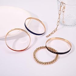 It’s GAME DAY today!Rock our game day bangle bracelets set to become the MVP of game day fashion.these football jewelry for women features set of 5 game day bracelets Including navy and orange Game Day bangle bracelets, Gold Beaded Bracelets and gold paperclip bracelet, Daily fashionable and game-day detail designs,which matches the color of your team,Each football mom bracelet can be worn separately or stacked together or in combination with other Game Day bracelet,create a personalized and eye-catching wrist stack that complements your unique personality. Elevate your game day outfits with playful football mom accessories. Be ready to cheer your team on this football season.these game day bangle bracelet set have classic football team colors that complement team jerseys, fan gear, tank, t-shirt.And the stretch beaded bracelet and chunky bracelet’s simple and trendy design to wear with a little black dress or daily clothing to add a elegant style to your daily outfit.The Game Day gold jewelry for women effortlessly complement any look. Cheer on your favorite football team and show off your team's colors in style with our Game Day Accessories for Women.These dainty gold bracelets stack are made of high-quality alloy, hypoallergenic,lead and nickel free.Plated with gold and navy orange enamel,which is durable and colorfast and fit the wrist of most women.the comfortable fit ensures that it stays in place during even the most intense games.The navy and orange bangle diameter: 2.6 inches.Gold Beaded Stretch Bracelets Diameter:2.7 inches.Chunky Paperclip Link Chain Bracelets Length:7inch with 2inch extender Whether you are supporting your favorite national football team, cheering for your college football team, or showcasing your spirit for the local football league, this football cheer bracelet can seamlessly blend into your game day outfit.These team spirit jewelry is perfect for cheer leading,tailgate party, college football games,club sports, homecoming game, tournament and daily party.Wear these Game Day costume accessories for women will keep your cheering all day long to light up the ball park! Embrace the spirit of the game with this fashion sports fan jewelry and score a touchdown on Game Day.The gold bangle bracelets for women is wonderful gifts for football mom, football lover, cheerleader, teammates, friends, family or treat yourself at Tailgate party,Game day,Birthday,Christmas,New Year,Thanksgiving,celebrations,Theme party and more!