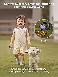 Companion Pet Toys for Babies: For babies, their first stuffed animal is very important. This little lamb that responds to touch is not just a toy, but also a caring playmate who is always on standby. When the baby touched it curiously, it responded enthusiastically with a swaying walking posture and a crisp singing voice, as if saying, "I've always been by your side." This warm interaction gives the baby a sense of security and becomes the most healing support on his growth path. Walking Baby Toys: Featuring a built-in precision rocking mechanism, the lamb gently sways side to side to the rhythm of music, mimicking a walking posture. Its adorable charm captivates babies instantly. The included leash transforms this little lamb into your baby's first adorable pet to “walk.” Take it by the lead and embrace the sunshine and grass! Interactive Fur Real Sheep Toys: Keep the fun going with a built-in collection of multiple nursery rhymes! Light touch, and it rings— Cute and swaying. These catchy tunes will have your little one singing along, swaying their bodies, and clapping their hands. Soft Durable and Refined Sheep Stuffed Animal: We've woven our love for your baby into every inch of its skin. This toy is crafted from premium odorless soft plush fabric,it's gentle on skin and irritation-free. Every detail is meticulously machine-embroidered to eliminate any risk of small parts detaching and brings toys to life, especially the eyes. Babies can hold it and bite it, accompanying them throughout every day of their growth Perfect Idea for Baby Gifts: Perfect for educational and entertaining play with children and toddlers. It is an ideal gift for babies during Christmas, Easter, birthdays, holidays, and gatherings with sisters and friends. So take it home with you.(Requires 3 AA batteries, not included)