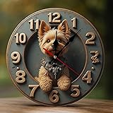 - This 10-inch Yorkie with Bowtie 2D Print clock wall combines functionality with design. Made from 5mm thick wood board, it delivers strength while maintaining a modern wall clock look. Its analog wall clock movement runs on a single AA battery (not included), offering a reliable battery wall clock and battery operated wall clock experience. With its silent wall clock non ticking sweep, this timepiece is suitable as a clock for bedroom wall, office clocks wall, classroom clock, or kitchen clocks wall decorative option.The versatile size makes it a practical living room clock, wall clock for bedroom, kitchen clock, or bathroom clock. For versatility outdoors, it functions as outdoor clocks waterproof, outdoor pool clock, or outdoor clock for pool area, adding value as outdoor clocks for patio waterproof solutions.As part of home and office décor, it works as wall clocks for living room, wall clock for bathroom, clocks for living room decor, and kitchen wall clocks. Its wall clock modern and modern clock wall style make it a match for minimalist wall clocks, modern wall clocks, or rustic wall clock interiors. This piece blends seamlessly into both contemporary and classic spaces while serving as decorative clocks for walls and aesthetic living room wall clock choices.Whether used as an office wall clock, bedroom wall clock, kitchen clocks, or bathroom clocks wall, this battery operated wall clock ensures accuracy and elegance. It is not only a practical timepiece but also a wall clock decorative accent for any space.