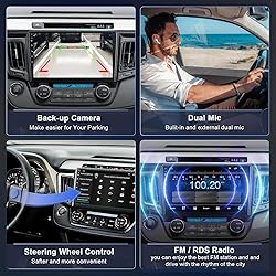 【Applicable Models】The car stereo is compatible with Car radio For Toyota RAV4 2013 2014 2015 2016 2017 2018. The package includes 2 power cables can support original car with J-B-L sound system & amplifier. If you are not sure our car radio can fit your car, you can send messages or picture to us, we will give you advice 【Android 13 System and 4GB+64GB】Our Android 13.0 car audio receivers with 10.2 inch IPS Touch Screen built-in 4G RAM + 64G ROM system, ensures smooth operation and faster response, 64 GB ROM for more apps installed. WiFI, Network, On-line surfing Available. After connected to WiFi or personal Hotspot, this Car Stereo allows you install android Apps from Application Store. You are driving with a smart Car stereo like a ipad. 【Wireless Carplay and Android Auto】This Toyota RAV4 Upgrade Replacement is compatible with wireless/wire apple CarPlay and Android Auto, you can make calls hands-free with the help of Siri or Goo-gle assistance, easy to get phone contacts, emails, notifications, map navigation, music, videos and more. It means that you can focus more on road safety while driving! 【Bluetooth Function& Steering Wheel Control】This Bluetooth5.2 radio supports answering/ making Bluetooth phone calls with hands-free. The built-in microphone picks up your voice and your car speaker can help you hear the person on the other side clearly. Use the steering wheel buttons to control the car audio, which is more convenient for operation and safer for driving. 【GPS Navigation & WIFI】The GPS Navigation Head Unit built-in GPS module and external GPS antenna for online or offline map navigation. Offline map data preloaded, ready to use after installation,includes voice and visual turn-by- directions 11 million+ POI library, 2D & 3D routes, fuel tracker. this car radio also supports WIFI Hot-spot connection, you can easily access and download online navigation APPs, Instagram, Facebook, TikTok, etc on Play store. 【Rear-view Camera Input】For this RAV4 car audio with backup camera,ready to offer 170°viewing angle backup, allowing you to see hazards such as pets, children, or mailboxes that behind your car. When you put on reverse gear, the screen of the RAV4 stereo will automatically switch to the reverse interface.Very safe and convenient when you are reversing even in a bad weather.Front View available but camera not included. 【Support Full RCA Output & Split Screen】Double Din Android 13 Car Radio comes with video output and Supports split-screen function.Supports car headrest video output, your family or friends could enjoy videos in the backseat. Support split-screen function, you can enjoy different interfaces on the same screen at the same time, bringing you a pleasant driving journey.