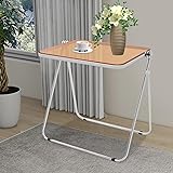 Folding Clear Table Small TV Tray, Tiny Foldable Desk for Snack Dinner on Couch, Small Computer Desk for Home Office, Space Saving Indoor/Outdoor Modern Metal Frame Furniture (Clear Tea)