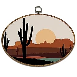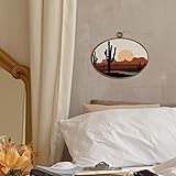 kdqua Boho Western Desert Landscape Oval Wall Art Decor, Mid Century Modern Sun Cactus Canvas Artwork Framed, Abstract Boho Wall Hanging Decorations for Home Living Room Bedroom, 11.4x8.6 Inch
