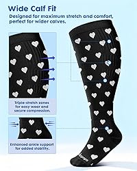 Triple-Stretch Design for Wide Calves: Lalapapa compression socks are specially engineered for wide calves, featuring a unique triple-stretch zone at the widest part of the calf. This innovative design ensures maximum elasticity and comfort, making them easy to put on and take off while maintaining a consistent 20-30 mmHg compression level. Say goodbye to the struggle of tight, restrictive socks and enjoy all-day support tailored for you Targeted Ankle Support for Stability: Designed with enhanced ankle compression, Lalapapa socks provide extra stability and support where it's needed most. This focused design not only reduces swelling and discomfort but also helps enhance blood circulation, making them ideal for those who need additional ankle support—whether you're on your feet all day or simply looking for relief from fatigue Stylish Design & Everyday Versatility: Function meets fashion with Lalapapa! Our 3-pair set features playful, stylish patterns that elevate your wardrobe while delivering the benefits of compression. Perfect for work, travel, workouts, or simply lounging at home, these socks support your lifestyle with a touch of flair. From nurses and teachers to travelers and athletes, take every step with confidence and comfort Premium Elastic Material for Easy Wear: Crafted from a premium nylon blend, Lalapapa socks offer superior elasticity and durability while maintaining a consistent compression level. The breathable, lightweight fabric keeps your legs cool and dry, even during extended wear. Thanks to its flexible design, these socks are easy to slip on and off, making them the perfect choice for wide calves and plus-size individuals seeking reliable, everyday comfort 3-Pair Set for Everyday Support: Lalapapa compression socks come in a convenient 3-pair set, designed to meet your needs for multiple occasions. Whether you're at work, traveling, exercising, or relaxing at home, you'll always have the right pair to keep your legs supported and comfortable. With playful patterns and reliable functionality, Lalapapa combines style, comfort, and performance in every step