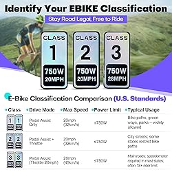 4 PCS Ebike Class 1 Sticker 750W 20 MPH Powersports Decal - Colorful Reflective Vinyl Sticker Set for Ebike Classification - 2.5 x 1.2 Inch